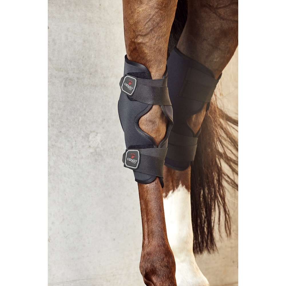 Die CATAGO FIR-Tech Sprunggelenkschützer (2 Stück) bieten essenziellen Schutz für die Sprunggelenke Ihres Pferdes, ideal für den Einsatz während des Trainings oder in Erholungsphasen.• Hergestellt aus stoßdämpfendem Neopren für effektiven Aufprallschutz.• Mit FIR-Tech-Gewebe ausgekleidet, das keramische Partikel enthält und Körperwärme reflektiert.• Verbessert die Blutzirkulation und fördert schnellere Erholungszeiten.• Entwickelt, um Verletzungen während der Bewegung oder beim Weidegang vorzubeugen.• Geeignet für Wettkämpfe und den täglichen Gebrauch.