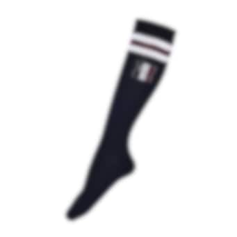 Kniestrümpfe aus Coolmax mit Feuchtigkeitsmanagement. Hoher Tragekomfort und besonders weich. Kontraststreifen unter der Rippung. Firmenlogo im Wadenbereich. Logo an der Fußsohle.