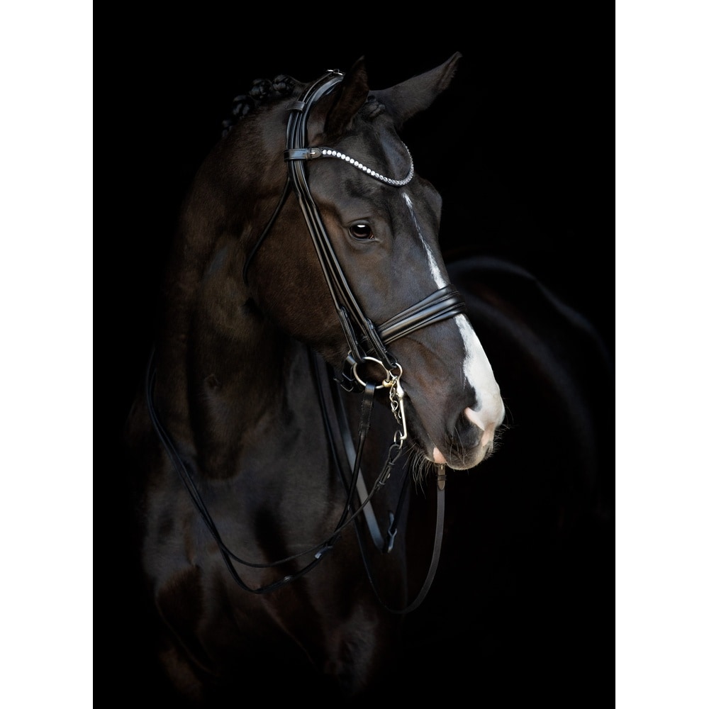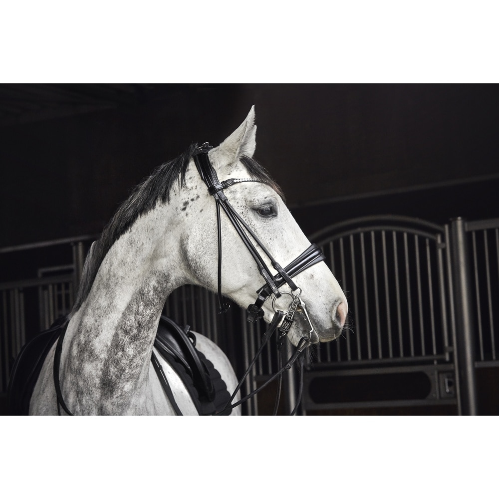 De Catago Rolled Double Bridle is ontworpen voor ruiters die op zoek zijn naar een verfijnde en comfortabele optie voor hun paard. Ideaal voor dagelijks gebruik of wedstrijden, combineert deze hoofdstel elegantie met functionaliteit.• Rondgenaaid dubbel hoofdstel, gemaakt van 100% Italiaans leer voor een luxueuze uitstraling. • Dikke traagschuim vulling in het nekstuk biedt uitzonderlijke drukontlasting. • Voorzien van een elegante slanke frontriem die afneembaar is met metalen haken. • Versierd met zilveren stenen die het nikkel gepolijste beslag aanvullen. • Voor aangepaste kleurmogelijkheden van de frontriem, overweeg de SADIE frontriem van Catago.