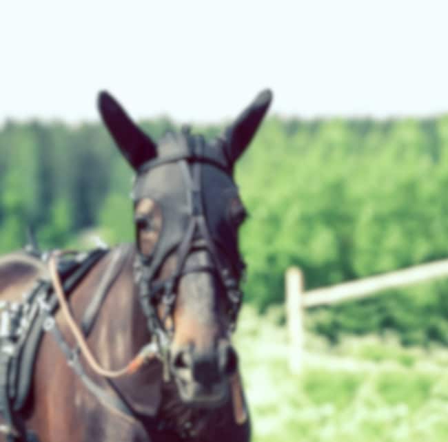 Vliegenmasker met oren, gemaakt van gebreide polyesterstof. Goed passende vorm met een elastische kliksluiting onder de kin.