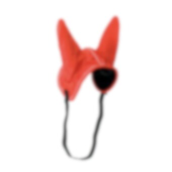 Oornetje voor pony's. Gemaakt van Enstex-stof met een wollen voering. Voorzien van een elastische rubberen band met klittenbandsluiting voor bevestiging rond de kaak.