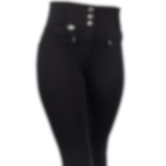 Mit einem klassischen Reißverschluss und einem Verschluss mit 3 Knöpfen ist diese stilvolle Reithose deine ultimative Wahl, um Komfort und perfekte Passform miteinander zu kombinieren. Der extra hohe Bund bietet eine figurbetonte Passform und sorgt neben zusätzlicher Unterstützung auch für einen besonders schlanken Look. Der neue Stoffmix ist weich und bequem, mit dem genau richtigen Stretchanteil.