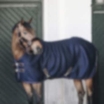 The 3D Spacer Cooler Sheet is a super lightweight and multi-functional rug that can be used for different purposes, such as transport, cooling down, fly sheet and in combination with other rugs as a liner or to put on your horse after work to dry him fast. The 3D Spacer material is a honeycomb structure, it allows the body heat of the horse to go through as well as offering a cushioning effect, which is extremely comfortable. The 3D Spacer Cooler Sheet features double front closures and two cross surcingles with clips that are reinforced with artificial leather. The bungee cord is detachable and has a plastic cover which allows easy cleaning. The artificial sheepskin protects the withers. The brown artificial leather piping and the Kentucky logo in brown artificial leather give the 3D Spacer Cooler Sheet a very fancy look. The rug is machine washable at 30°, no dryer.