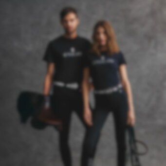 Dieses T-Shirt besteht aus einer hochwertigen Baumwollmischung mit 5 % Elasthan für zusätzliche Dehnbarkeit und Flexibilität. Dadurch passt sich das T-Shirt der Körperform an und sorgt für einen bequemen Sitz im und außerhalb des Sattels. Das Material fühlt sich angenehm weich an und eignet sich daher perfekt für den täglichen Gebrauch. Es ist nicht nur einfach zu stylen und bequem für Besuche im Stall, sondern auch ein schönes Kleidungsstück, das man in der Schule tragen kann.