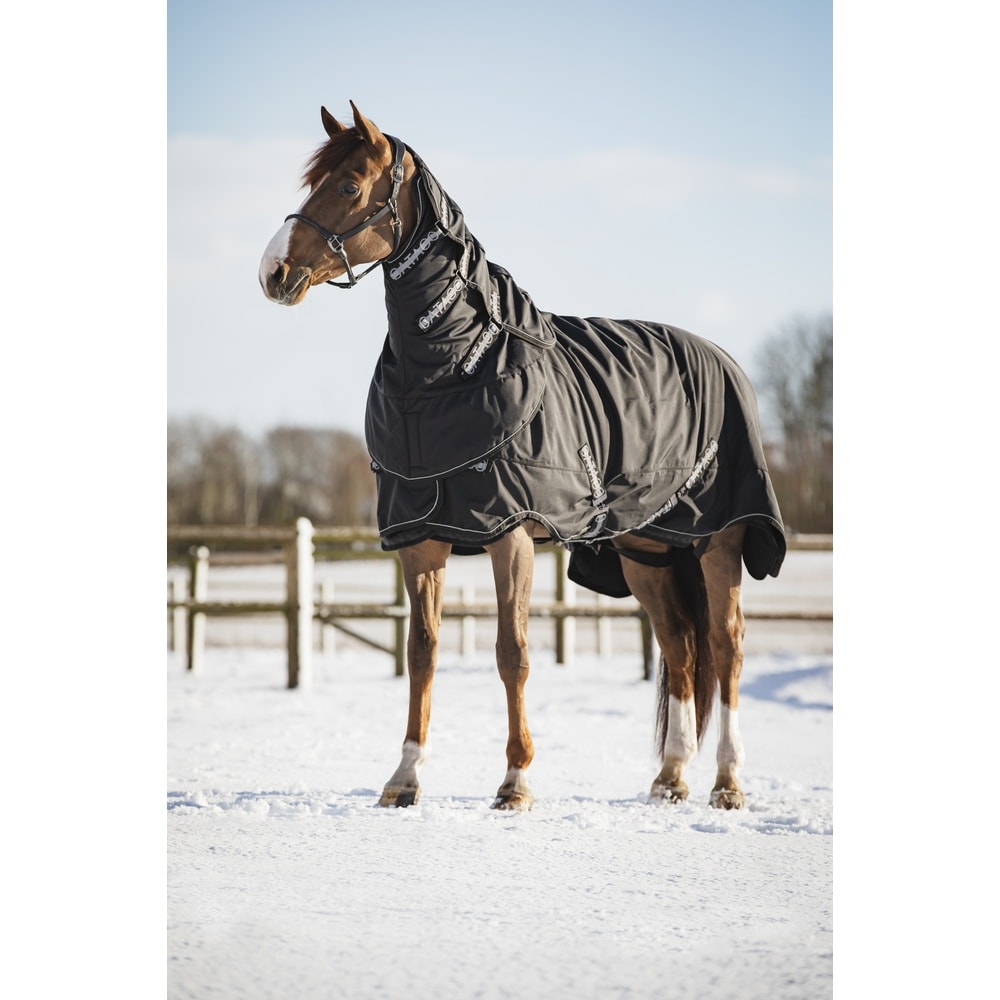 Catago Fir-Tech Compound Neck Piece 200g er designet til heste, der har brug for ekstra varme og støtte i køligere vejr. Ideel til brug i forskellige ride discipliner, kombinerer denne hals krave innovativ teknologi med praktiske funktioner.• FIR-tech teknologi anvender keramiske fibre til at reflektere kropsvarme som infrarød energi, hvilket øger varmen. • Fremmer øget blodcirkulation og celleaktivering for bedre samlet sundhed. • Har en ventilationskanal med aftageligt dæksel og mesh under for at håndtere overskudsvarme og forhindre manetab. • Vandtæt med tapede sømme, glitter logo stropbånd og reflekterende pynt; klassificeret til 3000mm vandtæt og 3000g/m2/24t åndbarhed. • Inkluderer en løkke til nem fastgørelse til en grime.Denne hals krave er lavet af holdbar 1680D ballistisk nylon med en polyester-keramisk foring og 200g fyld for ekstra isolering.
