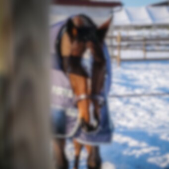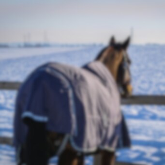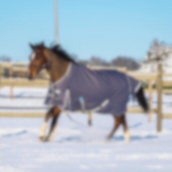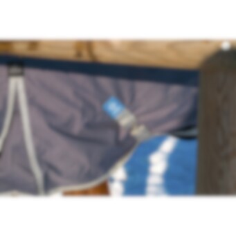 Waterproof and breathable turnout rug in 1200 denier ripstop recycled polyester with taped seams and nylon lining. Comes with a very large waterproof tail flap featuring a reflective strap, comfort gussets, a withers pad in synthetic sheepskin inside the rug, low-cross surcingles and thigh straps. Quick release EasyClip chest closure reinforced with self-gripping bands, with size indication on rubber patch.
