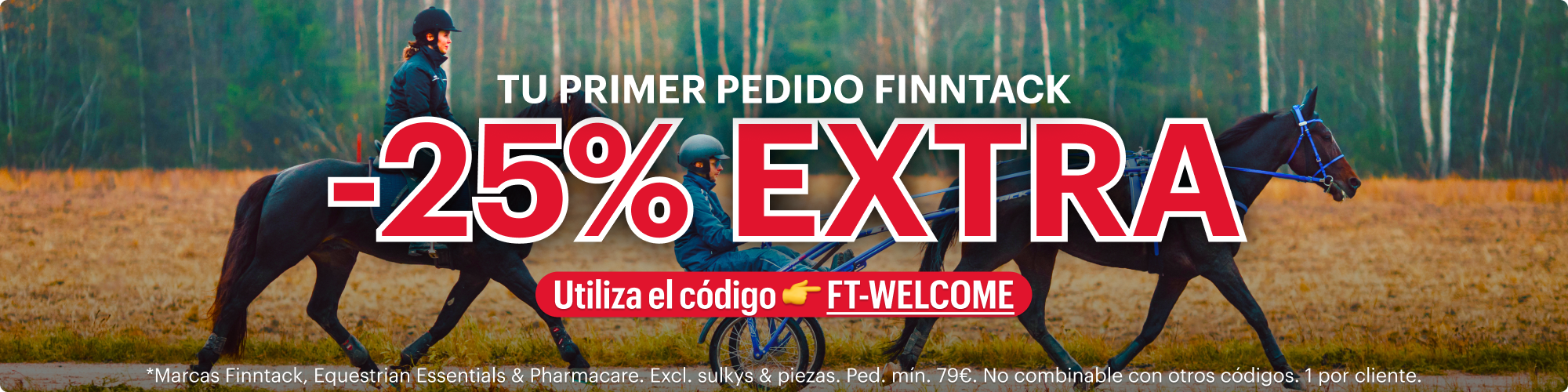 *Marcas Finntack, Equestrian Essentials & Pharmacare. Excl. sulkys & piezas. Ped. mín. 79€.