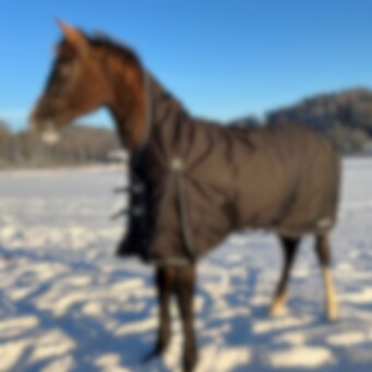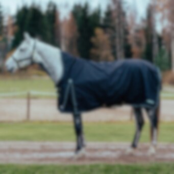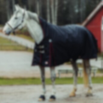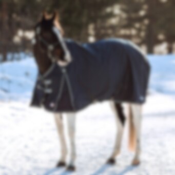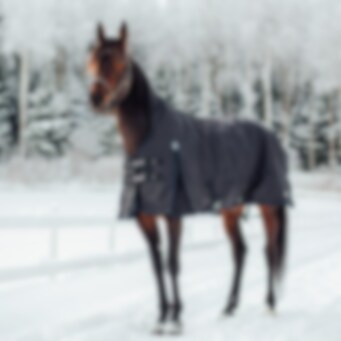 Manta de invierno de poliéster 600D con 300g de relleno. El cierre frontal ofrece una buena ajustabilidad con dos clips para un abrochado rápido y fácil. Esta manta incluye cinchuelos en cruz, correas elásticas para las piernas desmontables y protector de cola. Las aberturas altas en los hombros permiten libertad de movimientos y reducen las rozaduras. El tejido mantiene sus propiedades impermeables y transpirables incluso después de muchos lavados.