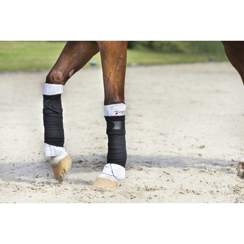 El Catago Fir Tech Leg Wrap es un accesorio elegante y funcional diseñado para el uso ecuestre y en el establo. Ideal para mantener las patas de tu caballo calientes y protegidas, estas vendas son perfectas tanto para el uso diario como durante las sesiones de entrenamiento.• Fabricadas con tela FIR-Tech que cuenta con fibras cerámicas tejidas que reflejan el calor corporal • Mejora la circulación sanguínea, promoviendo un calentamiento más rápido de músculos, tendones y articulaciones • Minimiza el riesgo de lesiones proporcionando un calor constante • Confeccionadas con relleno de fibra Synthermax para mayor comodidad • Exterior hecho de tela de malla ligera, similar a la utilizada en mantas FIR-Tech Estas vendas para las patas son una opción práctica para mantener la salud y el confort de las patas de tu caballo.