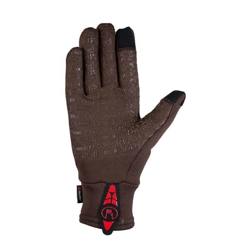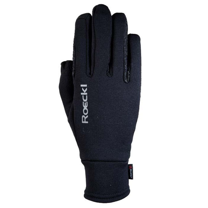 Altamente versatil y extremadamente elástico: ROECKL SPORTS presenta el guante Weldon. Conveniente: este todoterreno es COMPATIBLE CON PANTALLAS TÁCTILES, lo que te permite tomar llamadas en tu smartphone sin tener que quitarte los guantes. El pulgar y el dedo índice han sido diseñados con el sofisticado corte 3D para facilitar un uso más rápido y sencillo de la pantalla táctil sin comprometer el confort de uso. Además, este modelo encantará a los jinetes por su corte esbelto. Gracias al exclusivo COMFORT CUT de ROECKL, no se requiere recorte adicional en el dedo índice. El dorso y la palma están hechos de Polartec® Power Stretch® Pro, cálido, suave y especialmente elástico. La calidad particularmente pesada de los materiales garantiza mayor calor, mientras que las costuras exteriores proporcionan mayor comodidad y agarre. Conveniente y hermoso: la palma con innumerables pequeños logotipos de mano de ROECKL siliconados asegura un agarre perfecto sobre las riendas. La zona entre el dedo anular y el meñique, que es la parte del guante que entra en contacto con las riendas, cuenta con un refuerzo adicional siliconado. La ayuda para poner de color rojo siliconado facilita el ajuste de los guantes, mientras que el logo reflectante de ROECKL completa la bien pensada gama de características de este guante.