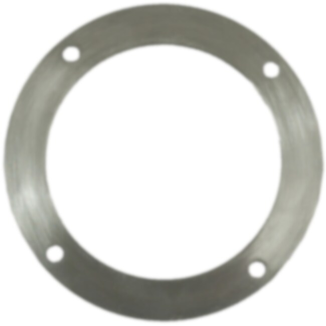 Diámetro interior 61,5mm, exterior 85mm. 4 orificios para tornillos de diámetro 4mm. Espesor de placa 1,5mm. Material: acero inoxidable.