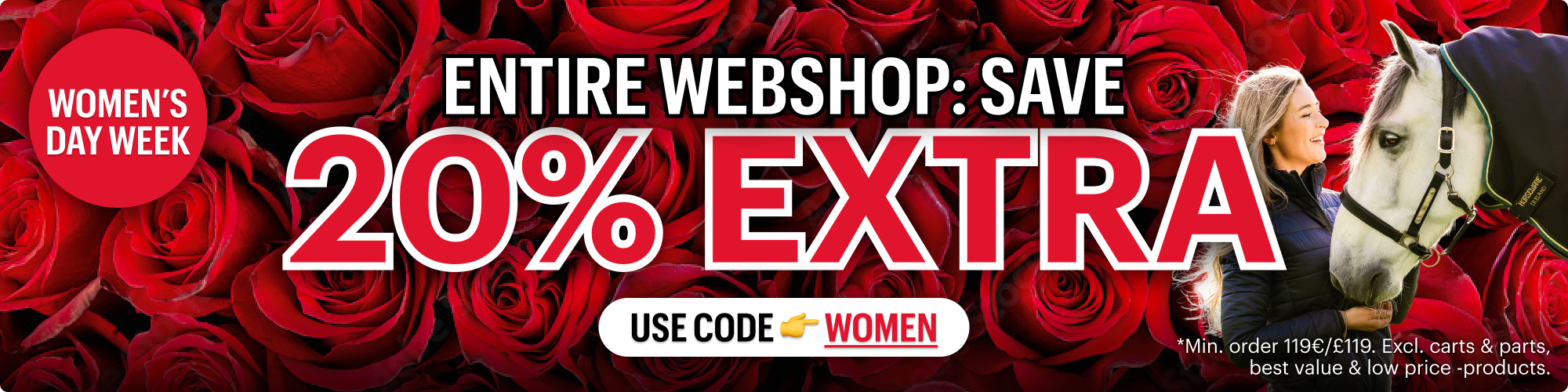 ENTIRE WEBSHOP: 20% EXTRA OFF with code 👉 WOMEN 🌹 *Min. order 119€. Excl. carts & parts.