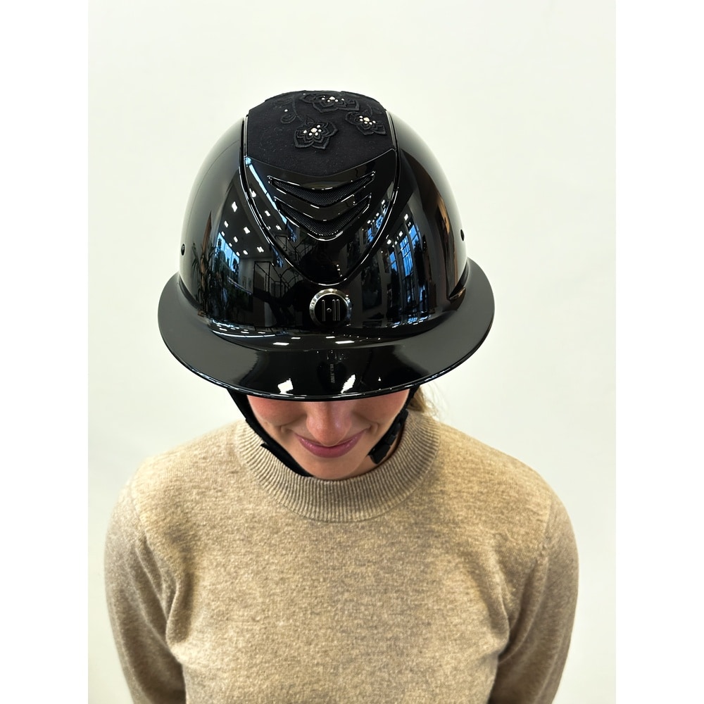 "The One K Avancé Riding Helmet with Embroidery Top and Chrome Pipe is designed for equestrians seeking both safety and style. Ideal for riders of all levels, this helmet combines functionality with a sleek appearance.