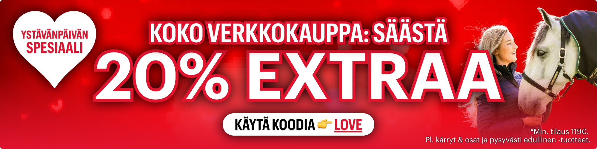 Ystävänpäivän spesiaali 💌 KOKO VERKKOKAUPPA: -20% EXTRAA koodilla 👉 LOVE 🤍