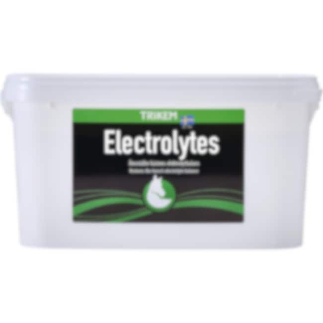 Trikem Electrolytes on lisäravinne, joka on suunniteltu ylläpitämään nestetasapainoa ja elektrolyyttitasapainoa hevosten kehossa. Se on erityisen hyödyllinen fyysisen rasituksen aikana, kun hevoset menettävät merkittäviä määriä elektrolyyttejä hikoilun kautta.• Tukee palautumista ja suorituskykyä intensiivisen harjoittelun ja kilpailukauden aikana• Sopii kaikille hevosille, erityisesti treenaaville tai kilpaileville• Auttaa palauttamaan elektrolyyttitasapainon löysän ulosteen tai ripulin yhteydessä• Suositellaan korkeampaa annostusta harjoittelu- tai kilpailupäivinä• Helppo sekoittaa rehuun tai juomaveteen• 0 h varoaika kilpailuissaAnnostus: 10 ml (10 g) per 100 kg kehon painoa päivässä kevyessä työssä. Täysikokoiselle hevoselle (500 kg) anna 50 ml/päivä; ponille (250 kg) anna 25 ml/päivä. Tuplaa annostus raskaassa työssä tai merkittävässä hikoilussa. Varmista aina, että puhdasta juomavettä on saatavilla.