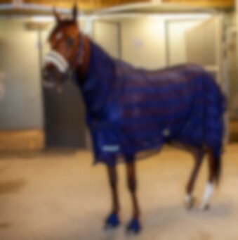 Tämä verkkoloimi on täydellinen jäähdytysloimi lämpimimpiin päiviin. Tarrakiinnitys niskassa ja ristikkäiset mahavyöt pitävät loimen hyvin paikoillaan.