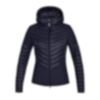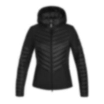 Topattu naisten takki, jossa on softshell- ja tikkikangasta. Materiaaliyhdistelmän ansiosta takki on urheilullinen ja sopii monenlaiseen säähän. Takissa on naisellinen leikkaus. Edessä oleva kiiltävä kaksisuuntainen metallivetoketju viimeistelee naisellisen tyylin. Hupussa on mukava toppaus, ja sen voi irrottaa ja kiinnittää helposti napeilla.