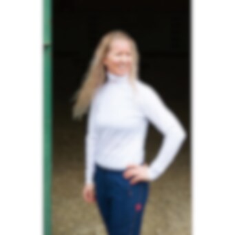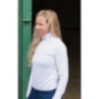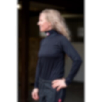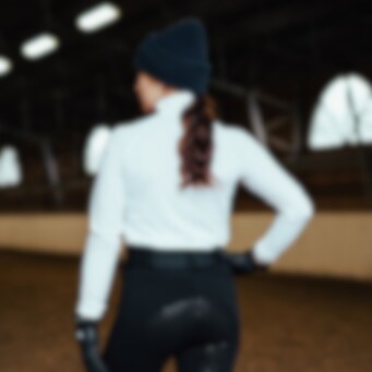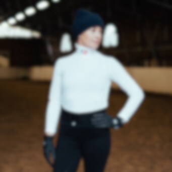 Tyylikäs paita, joka on valmistettu kevyestä teknisestä materiaalista. Mahdollisimman suuri liikkumavapaus ja miellyttävä olo kuuminakin päivinä. Sopii täydellisesti kilpailuasun tai takin alle. Korkea kaulus, jota koristaa uusi Finntack-logo.