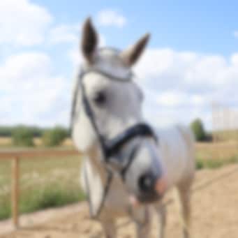 Upeissa Equestrian Essentialsin Luxury suitsissa on näyttävä otsapanta, jossa on rivi suuria ketjukristalleja pehmeässä U-muodossa, korostaen kauniisti hevosesi luonnollista pään muotoa.