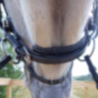 - Pyöreästi tikatut poskihihnat ja kiinnikkeet