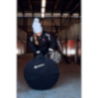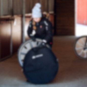Finntack rengaspussi. Valmistettu kestävästä kankaasta, sisäpuolella on pehmeä materiaali joka ei naarmuta rengasta. Navan alue vahvistettu, jotta napa ei hankaa reikää materiaaliin. Laadukas YKK-vetoketju. Tere ulkokehällä pitää pussin ryhdissä myös silloin kun pussissa ei ole rengasta.