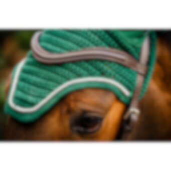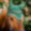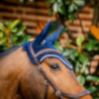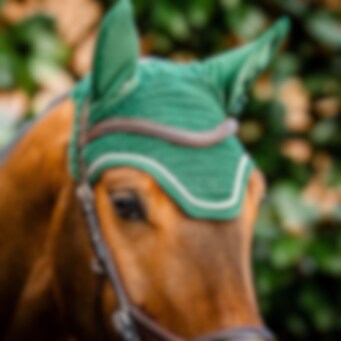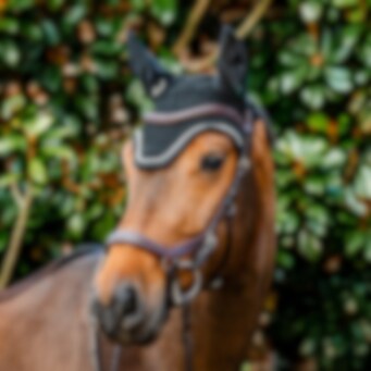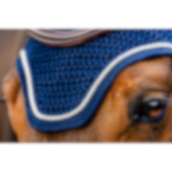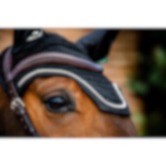 - Joustava polyesterikorvapeite, joka mukautuu hevosen korvan muotoon ja kokoon lisääntyneen mukavuuden takaamiseksi