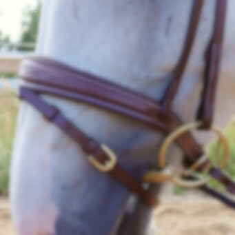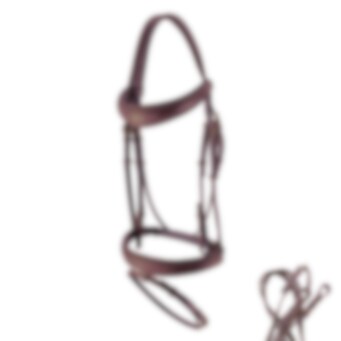 Ce bridon sophistiqué présente des coutures détaillées sur la muserolle et la frontal. Le rembourrage doux assure le confort de votre cheval. Les rênes caoutchoutées offrent une prise sécurisée, tandis que les ferrures en laiton complètent le design élégant.