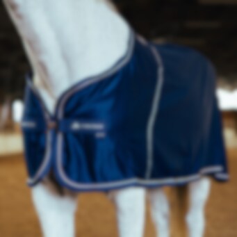 Couverture légère et élégante, avec une finition satinée. Cette couverture est excellente quand vous partez en concours et que vous souhaitez présenter votre cheval sous son meilleur angle. La couverture dispose d’un liséré argenté ou doré, et le tissu est composé d'un matériau satiné brillant. La face intérieure est un matériau qui sèche vite. La couverture est dotée d’une simple fermeture de poitrail, d’une sangle ventrale et d’une courroie de queue. Un logo Finntack devant sur la fermeture de poitrail.