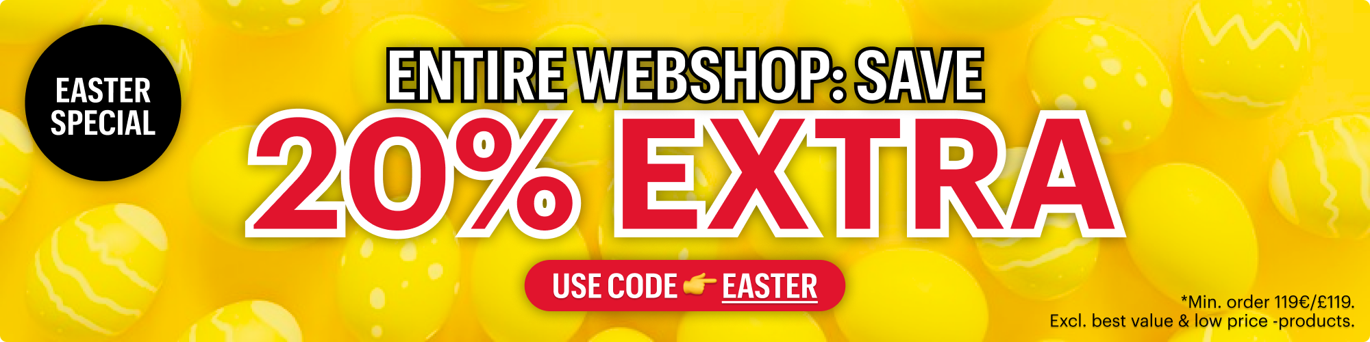 ENTIRE WEBSHOP: 20% EXTRA OFF with code 👉 EASTER 🐣 *Min. order 119€. Excl. best value & low price -products.