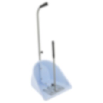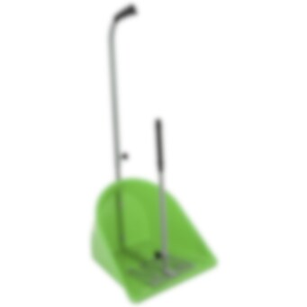 Ideal for partial cleaning of a stall or of the stables, and to pick up manure in the arena. Handles of shovel and rake are telescopic, and height is adjustable with a wheel.