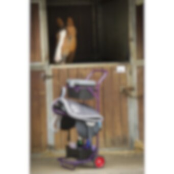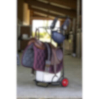 Ideal for effortlessly moving all the equipment. - Deep tint: Dark and refined colors.- Detachable: Facilitates transport, allowing it to be easily stored in a small space.- Compatible and secure: Can accommodate a grooming box, placed on straps to prevent slipping. DETAILS:- Hooks for bridle or halter, saddle rack, or saddle pad.- Delivered unassembled.- Compatible with grooming box (700 004).
