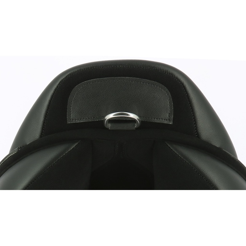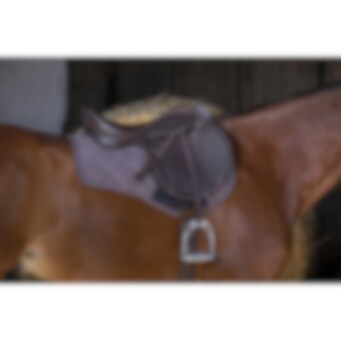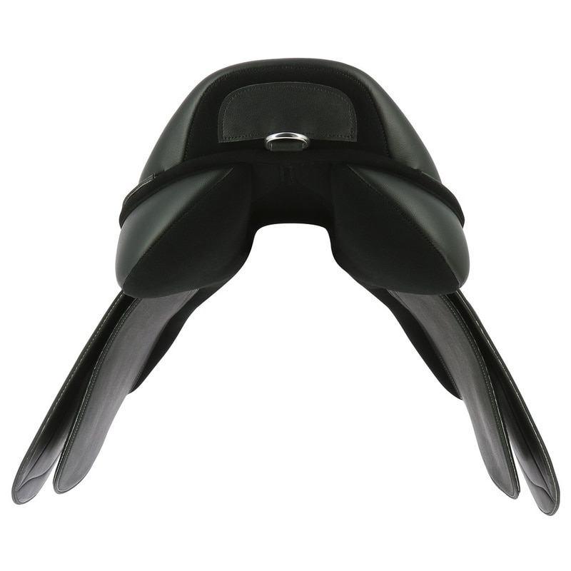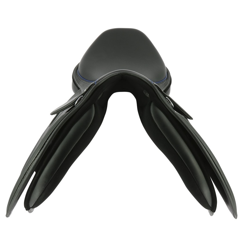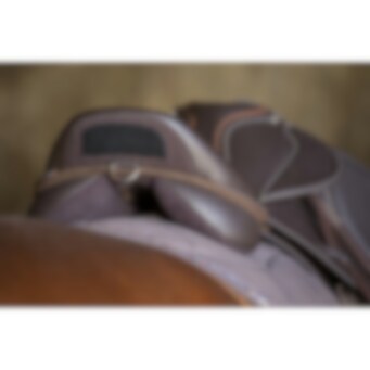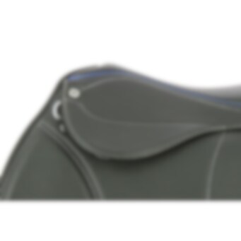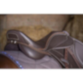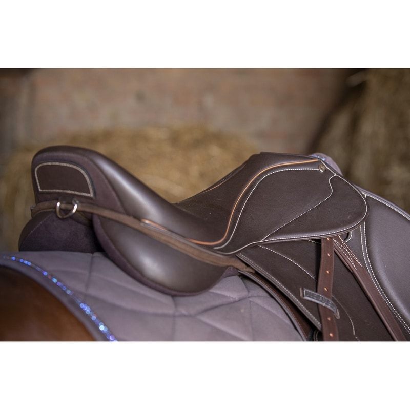 Jumping saddle in hard-wearing non-slip material (synthetic, Rexine, EVA and laminated synthetic fabric). Seat features blue piping for the black saddle and orange for the brown saddle. Bottom of the flap is reinforced. Semi-deep tree in moulded injected plastic with interchangeable gullet, to adapt perfectly to your horse’s withers and shoulders. Comes with a medium size gullet as standard. Panels are stuffed with synthetic wool and lined with textured polyester. Interchangeable front knee rolls held in place by self-gripping tape. Ring-mounted PVC-reinforced girth straps. Features a (name) patch mounted on self-gripping tape at the rear of the cantle, as well as a crupper ring. Composition: polypropylene.