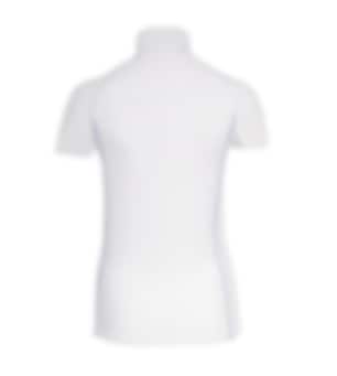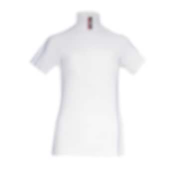 Maglia a collo alto in cotone con un leggero effetto stretch. Cuciture dettaglio in blu navy lungo le giunture. Prodotto in Italia.