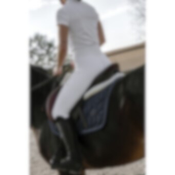 Leggings equestri con cintura incrociata. - Elasticità e comfort: Tessuto leggero e traspirante. - Design originale: Ampia cintura incrociata denominata "Tulipano." DETTAGLI: - Seduta in silicone. - Tasche per cellulare su entrambi i lati. - Decorazione "Je t'aime" con strass sul lato del leggings. COMPOSIZIONE: Tessuto principale: 78% poliestere, 22% elastan. Cintura: 75% poliammide, 25% elastan.