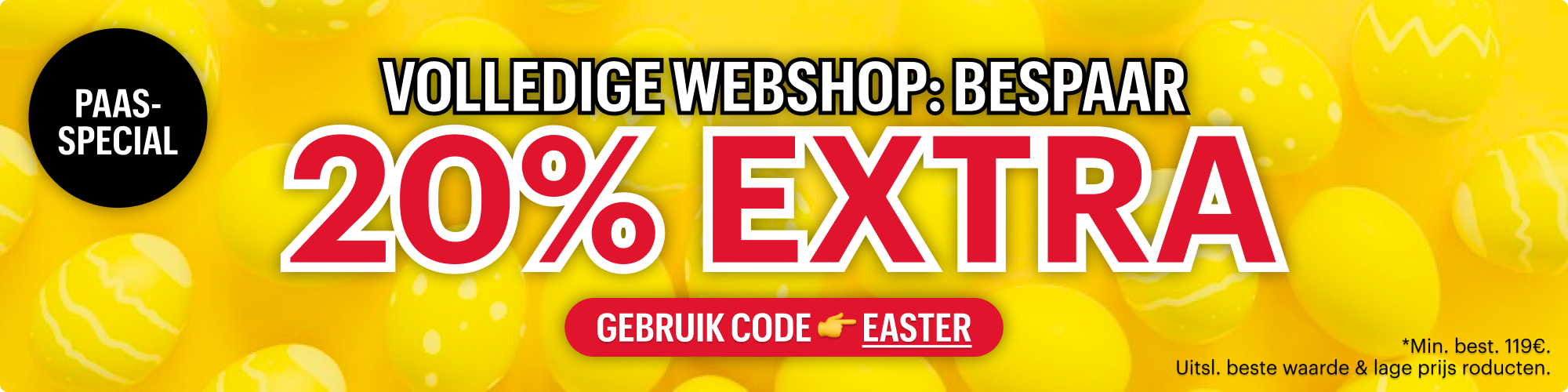 VOLLEDIGE WEBSHOP: -20% EXTRA met code 👉 EASTER 🐣