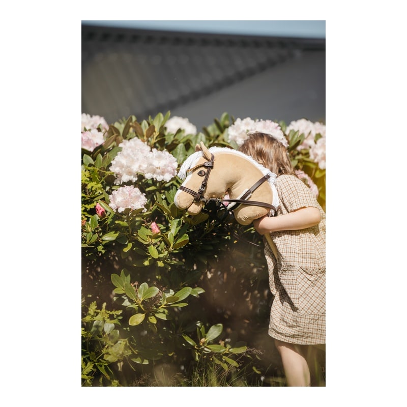 Maak kennis met het My Hobby Horse hoofdstel in een rijke bruine tint, versierd met elegante gouden stenen. Dit unieke en levensechte hoofdstel is perfect voor hobby horse liefhebbers die stijl en functionaliteit waarderen.• Gemaakt van duurzame materialen voor langdurig gebruik• Verstelbare gespen voor een op maat gemaakte pasvorm• Voorzien van een exclusieve frontriem met glinsterende stenen• Frontriem kan eenvoudig worden verwisseld voor een andere My Hobby Horse frontriem in een andere kleur• Inclusief een origineel My Hobby Horse bit voor een authentieke rijervaring• Wordt geleverd met een set teugels die eenvoudig kunnen worden vast- en losgemaaktLaat je fantasie de vrije loop terwijl je rijdt met dit prachtig ontworpen hoofdstel, dat de vreugde van je hobby horse avonturen vergroot!