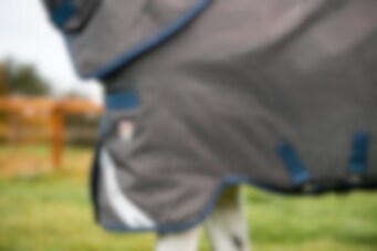 Flexibele deken met ingeweven reflecterend garen dat opvallend oplicht bij weinig licht voor extra veiligheid. Maakt gebruik van de beste technologieën van Horseware. Inclusief Barrier Technology, Aquatrans coating, Vari-Layer technologie en Reflectech voor een zeer technische en onmisbare regendeken, die maximale bescherming biedt tijdens de donkere maanden.