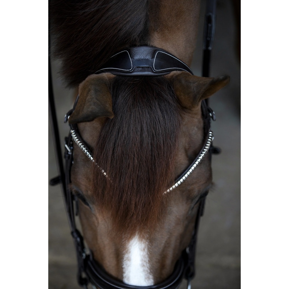 De Catago Brooklyn Hoofdstel is een stijlvolle en comfortabele keuze voor ruiters die op zoek zijn naar een hoogwaardig hoofdstel voor hun paard. Ontworpen voor optimale pasvorm en drukontlasting, is dit hoofdstel perfect voor zowel training als wedstrijden.• Leren voering bij de neusriem en het nekstuk verhoogt het comfort voor uw paard • Atomisch gevormd nekstuk biedt extra drukontlasting • Verkrijgbaar in twee elegante kleuren naar uw voorkeur • Voorzien van aantrekkelijke zilverkleurige clinchers op de frontriem • Duurzaam metalen beslag in een strakke zilverkleurige afwerking Dit hoofdstel is ontworpen om zowel functionaliteit als een verfijnde uitstraling in de arena te bieden.
