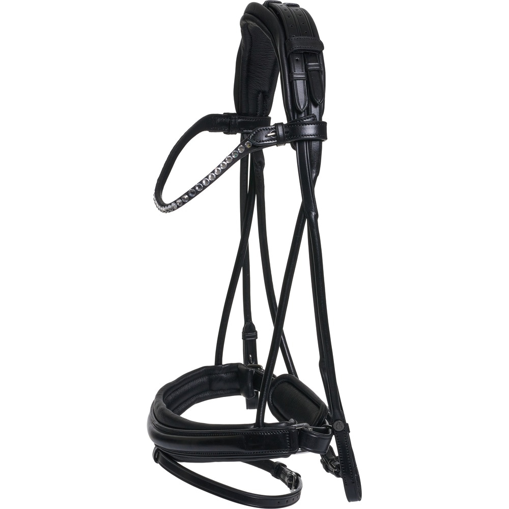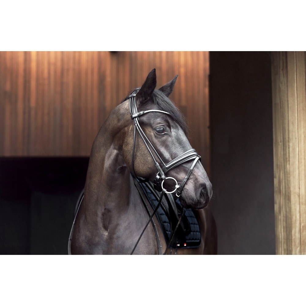 De Catago Shay Rolled Trens is een premium keuze voor ruiters die elegantie en comfort voor hun paard zoeken. Ontworpen voor dagelijks gebruik, combineert deze trens luxe met functionaliteit.• Luxe Italiaans leer zorgt voor duurzaamheid en een verfijnde uitstraling. • Dikke geheugenschuim vulling in het anatomisch gevormde kopstuk biedt extra drukverlichting voor je paard. • Rond gestikte details verbeteren de elegante en stijlvolle uitstraling van de trens. • De smalle frontriem heeft een enkele rij stenen voor een vleugje verfijning. • Alle hardware is gemaakt van glanzend pistoolmetaal, met metalen haken voor eenvoudig openen.