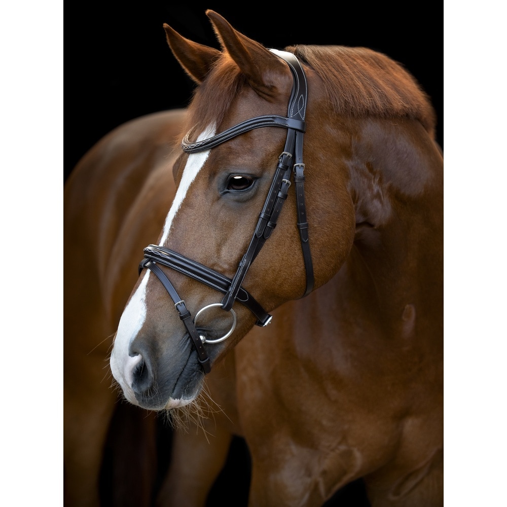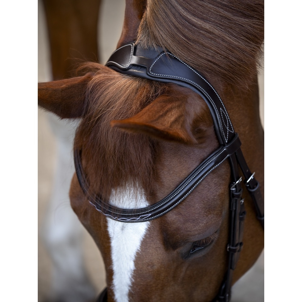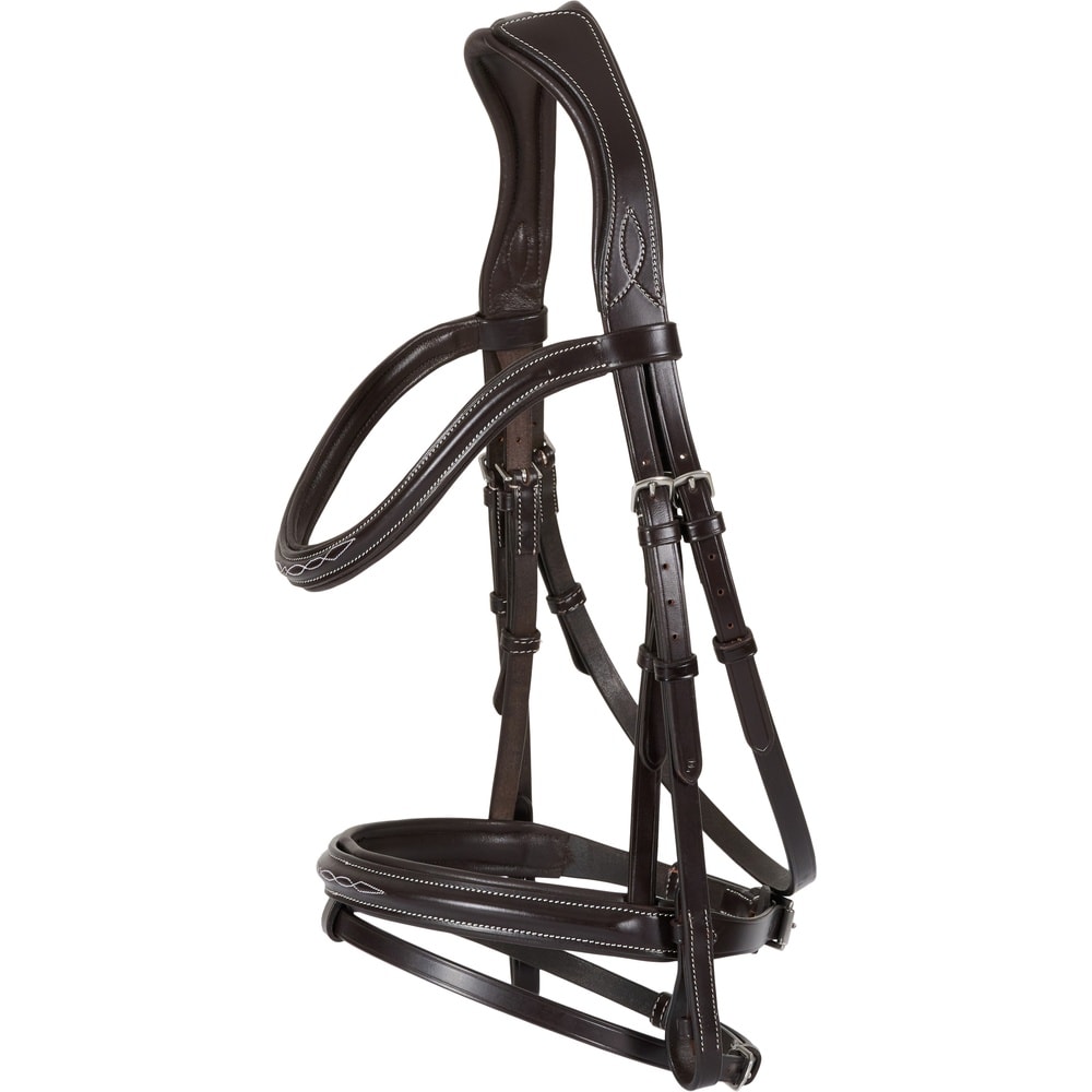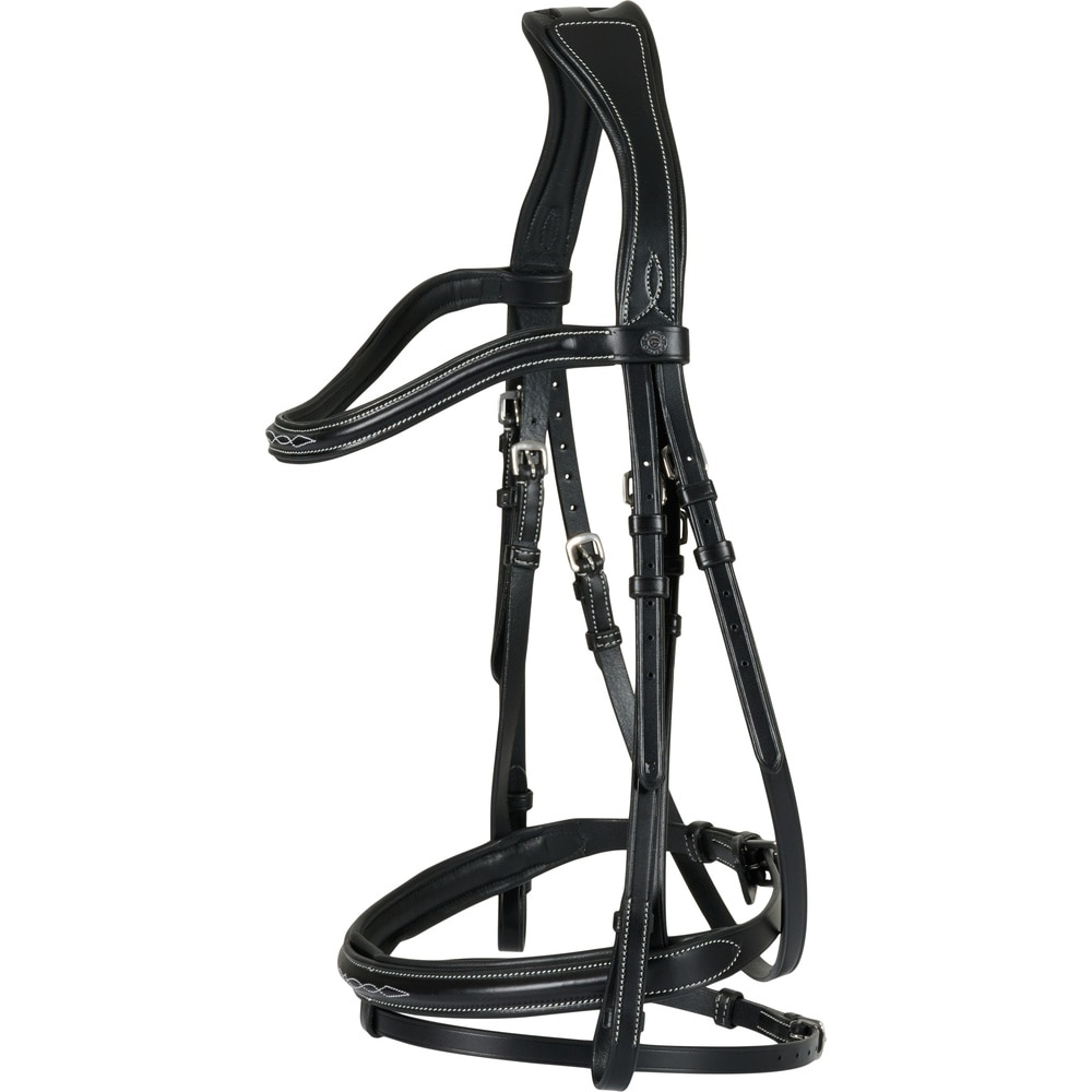 De Catago Torina Hoofdstel is een prachtig ontworpen hoofdstel, ideaal voor dressuur, met lederen voering voor verbeterd comfort. Dit hoofdstel is perfect voor ruiters die zowel stijl als functionaliteit zoeken.• Lederen voering bij de neusriem en het kopstuk voor extra comfort • Anatomisch gevormd kopstuk biedt extra drukverlichting • Verkrijgbaar in twee kleuren om aan uw voorkeuren te voldoen • Contrasterende stiksels en borduursel op de neus- en frontriem voor een elegante uitstraling • Al het metaalbeslag is zilverkleurig voor een gepolijste look