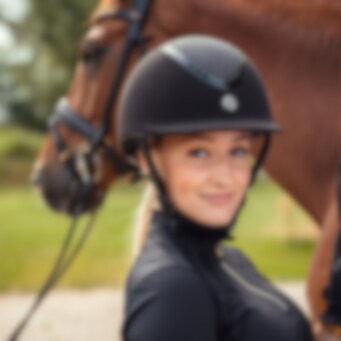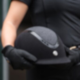 EQ3 "Pardus"+ Microfibre is an elegant riding helmet, covered in black microfibre and with an upper part in glitter. The ventilation holes serve both as a decorative detail and provide good breathability to the helmet. The liner features our Coolmax® technology that keeps you dry and comfortable by wicking away moisture. The liner is removable and can be easily washed in lukewarm water.