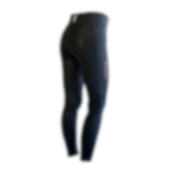 Ridetights med full grip til barn. Kraftig stretch. Høy linning for bedre komfort. Holder svært godt på fasongen. Stor fleksibilitet og komfort. Pustende materiale som tørker raskt. Full grip-mønster med KL. Skjult mobillomme med glidelås. Mesh bak knærne og på bakside legg. Kingsland-broderi på låret. Brodert logo midt bak på linningen. Metallhempe i siden.