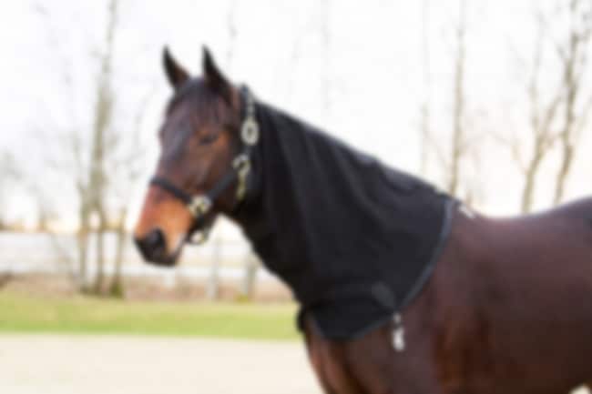 Halsdekkenet er et perfekt tilbehør som gir den samme Back on Track-effekten på hals- og nakkemuskler. Halsdekkenet er laget av samme materiale som fleecedekkenet. Halsen festes med D-ringer rundt grimen og med tre D-ringer i dekkenet. Ringene det skal festes i kommer sammen med halsen, slik at du selv kan sy dem på dekkenet. Halsen lukkes med tre borrelåser på undersiden.