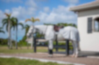 Bekytter hesten mot insekter mens du rir, fasongen gjør at den passer rundt salen og gir plass til rytterens bein, avtagbar hals som er enkel å åpne for å beskytte hestens hals og skuldre, løkker som kan festes i hodelaget under trening og refleksstriper.
