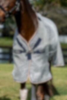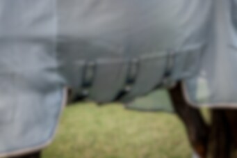 Høydepunktene inkluderer en forlenget halsfasong med en avtagbar, tettliggende hette og utvidet brystdekning for maksimal beskyttelse mot fluer og insekter. V-frontlukningen vår avlaster trykk, forhindrer skuldreland, og sammen med våre unike doble beinbuer, gjør det at hesten din kan beite mer komfortabelt. Dekkenet har en halesnor for ekstra sikkerhet. Vi har lagt til ekstra dybde til kneet og et ekstra bredt magebelte med borrelåslukking samt tre påfølgende bringestropper for å gi forbedret sikker dekning. Den oversizede haleklaffen med silkefôr, som også finnes på halsen og skuldrene, fortsetter den beskyttende temat.