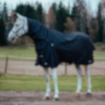 Ekstra varmt kombinert vinterdekken til hest. Smart design som dekker åpningen som de fleste kombinerte dekken har foran. Høyt nakkestykke med borrelåsreim. Dette vinterdekkenet har doble bogspenner med hurtigkroker, samt kryssgjorder og beinsnorer med strikk. Haleflapp. De høye bogsplittene gir bedre bevegelsesfrihet for hesten, og mindre gnaging. Stoffet beholder de gode vanntette og pustende egenskapene, selv etter mange vask.