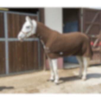 Et grunnleggende nøkkelplagg: et tørkedekken eller underdekken i 100% polarfleece polyester med en vekt på 240 g/m². - Polarfleece mankepute som forhindrer gnagsår. - Brystlukking med spenner av nikkelforgylt metall, kryssgjorder med lavt kryss i elastikk, og halesnor. Kan vaskes i maskin på 30°C. Må ikke tørketromles.