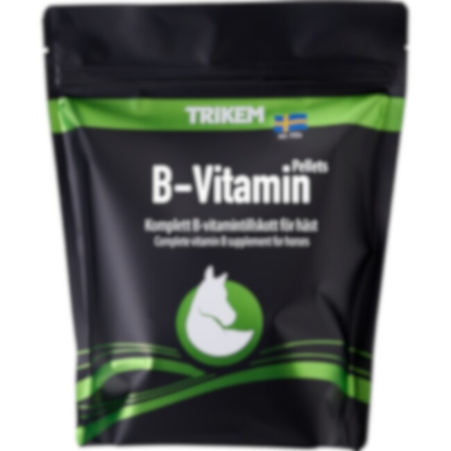 Trikem B-Vitamin Pellets er et komplett B-vitamintilskudd designet for hester av alle typer og aldre. Det støtter essensielle kroppsfunksjoner, inkludert energi- og proteinmetabolisme, nervesystemet, hud- og pelshelse, samt dannelsen av røde blodceller.• Komplett B-vitamintilskudd som inneholder alle 8 essensielle B-vitaminer• Pelletsform for enkel fôring• Egnet for alle hestetyper og aldre• Støtter hester med økt B-vitaminbehov under trening, konkurranse, sykdom, eller felling• Hjelper med å opprettholde generell vitalitet og helse• Tilgjengelig også i flytende formDosering: 5-10 ml (5-10 g) per 100 kg kroppsvekt per dag, eller basert på estimert fôrinntak.0 timer karenstid før konkurranse.