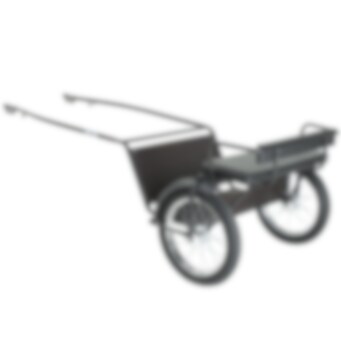 Finntack Rockart til ponni med metalldrag og standard feste. Ryggstøtten gir kusken bedre komfort samt bedre sikkerhet. Av sikkerhetsmessige hensyn er det også festet et deksel ved hjulene for å hinder at kuskens bein skal komme borti eikene. Vognen passer til ponnier med størrelsen shetlandsponni og gotlandsruss. Matchende hjul: 61010.