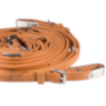 Syntetiske kjøretømmer i Beta-materiale med håndstropper. Endestykke i rustfritt stål. Tilgjengelig i tre farger og to størrelser. Medium: 4.0 m